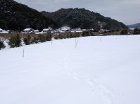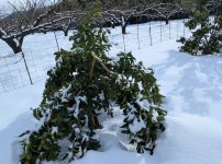 Twitter Share Pocket Hatena Pinterest LINE コメントする コピーする NEW ENTRY 2026/2/2 新平太夫、剪定 新平太夫 新平太夫 晴れ間 天気の悪い日が続きます。太平洋側はカラカラみたいで、雪を分けられるといいのですが、しかし極端な天気です。合間に晴れ間が見えると山は綺麗なものです。まだ、長靴が埋まるほど積もっています。満開までには剪定を終わらせたいのですが、ボチボチ進んでおります。 ReadMore 2026/1/30 雪害 梅の木 レモン ポッキリ ちょいちょい雪が降りまして、なかなか消えません。梅の剪定も少しずつ進めていますが、低い枝が雪に引っ張られて埋まってしまっています。剪定するにはなかなか厄介です。見た感じ大きく折れた枝は無いので、大丈夫かなと思います。しかしレモンはかなりダメージを受けました。梅よりかなり枝が柔らかく雪の重みで折れてしまいました。雪吊りするのも手間ですし、対策はなかなか難しいかもしれません。 ReadMore 2026/1/28 梅剪定 雪道スタスタ 現場到着 剪定 花枝 スノーシューを履きまして、現場の園地まで行ってみました。この場所は木が小さいので、脚立無しでも剪定ができます。雪道を最初は楽しく歩いていたのですが、100メートルくらい歩くと、コレが結構しんどくなってきます。かなりいい運動になります。慣れると楽になるのでしょうか。調べると雪道を歩くツアーをしている所もあるそうです。役場からウメ花枝の注文があったので、ソレも調達して、また雪道を帰って行ったのでありました。 ReadMore 2026/1/27 かんじき スノーシュー スノーシュー スノーシュー 雪が溶けないとなかなか畑に入るのが難しいので、かんじきこと、スノーシューを購入しました。コレがまた素晴らしい。長靴で歩くとズボッと埋まってしまいますが、コレを履くと少し埋まるだけでスイスイ歩けます。軽く梅畑まで到着できそうです。さすがに脚立に登るのは難しそうな。さて剪定を、進めましょうか。 ReadMore 2026/1/26 寒波3 ソリ 寒波3 家裏 集落小道 昨日は寒波3ということでしたが、15センチくらい積もったでしょうか。今回は敦賀から嶺北方面が大雪だったようです。コレくらいで助かりました。チビ達がソリを引けというので、トナカイのごとく除雪の入らない集落の小道を突き進みました。疲労困憊です。 ReadMore