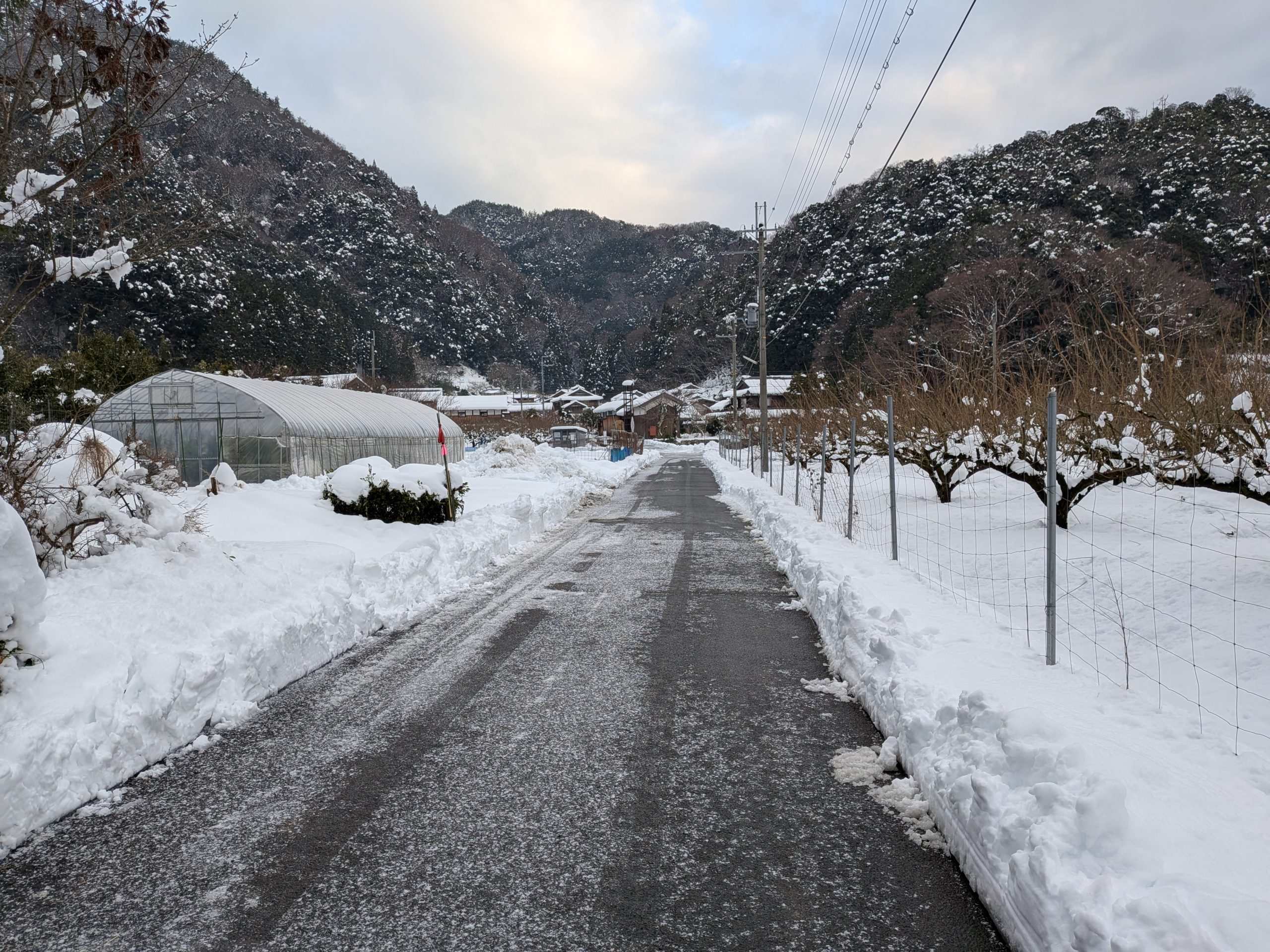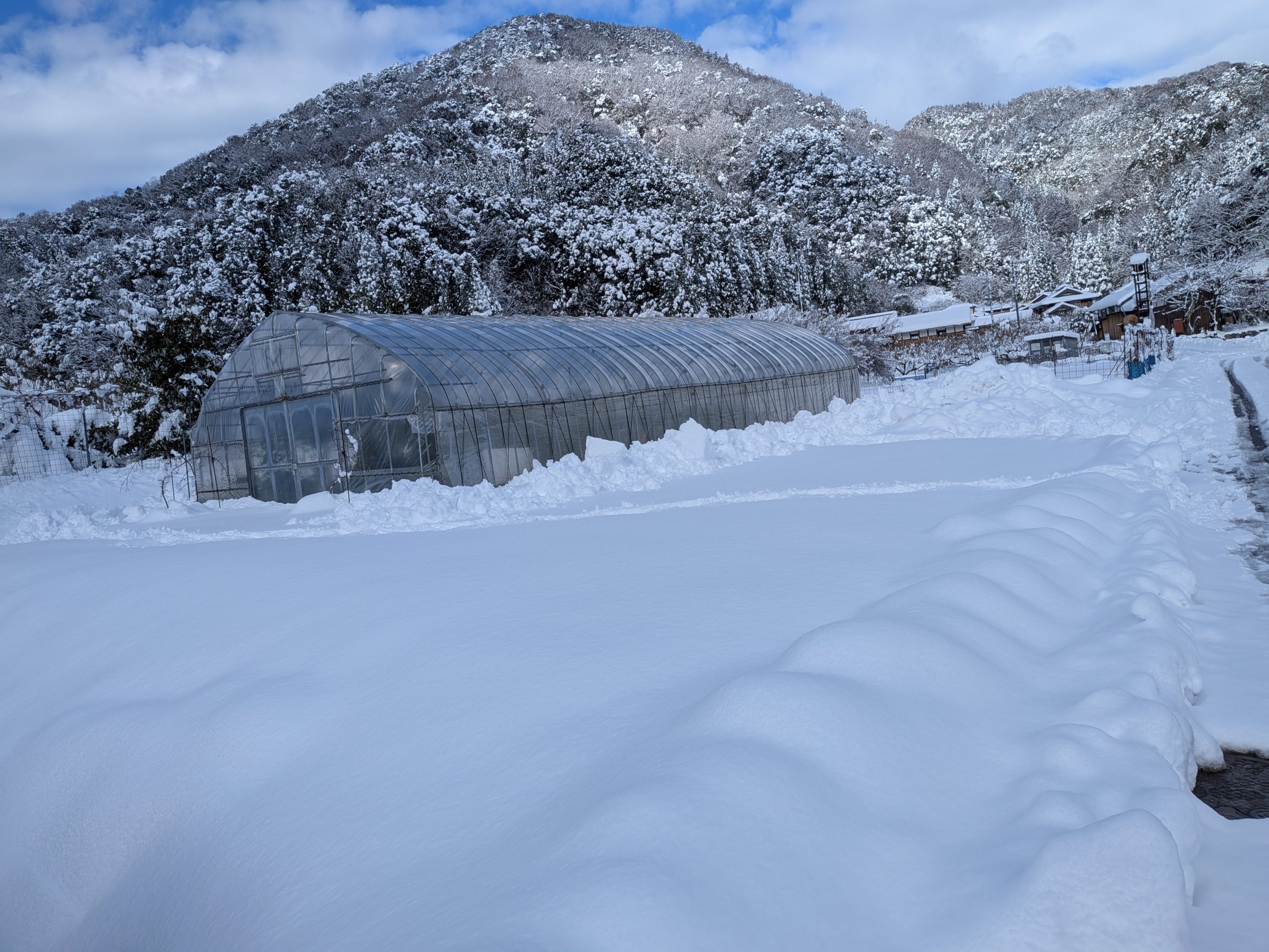 寒波ピークは過ぎ去ったのか、今朝雪は降っていません。しかし寒いので道路はガチガチに凍結しています。こういうのが滑って1番怖いですね。昨日ハウスの肩の雪もどかしまして、日曜日の寒波もコレで乗り切ってくれることでしょう。