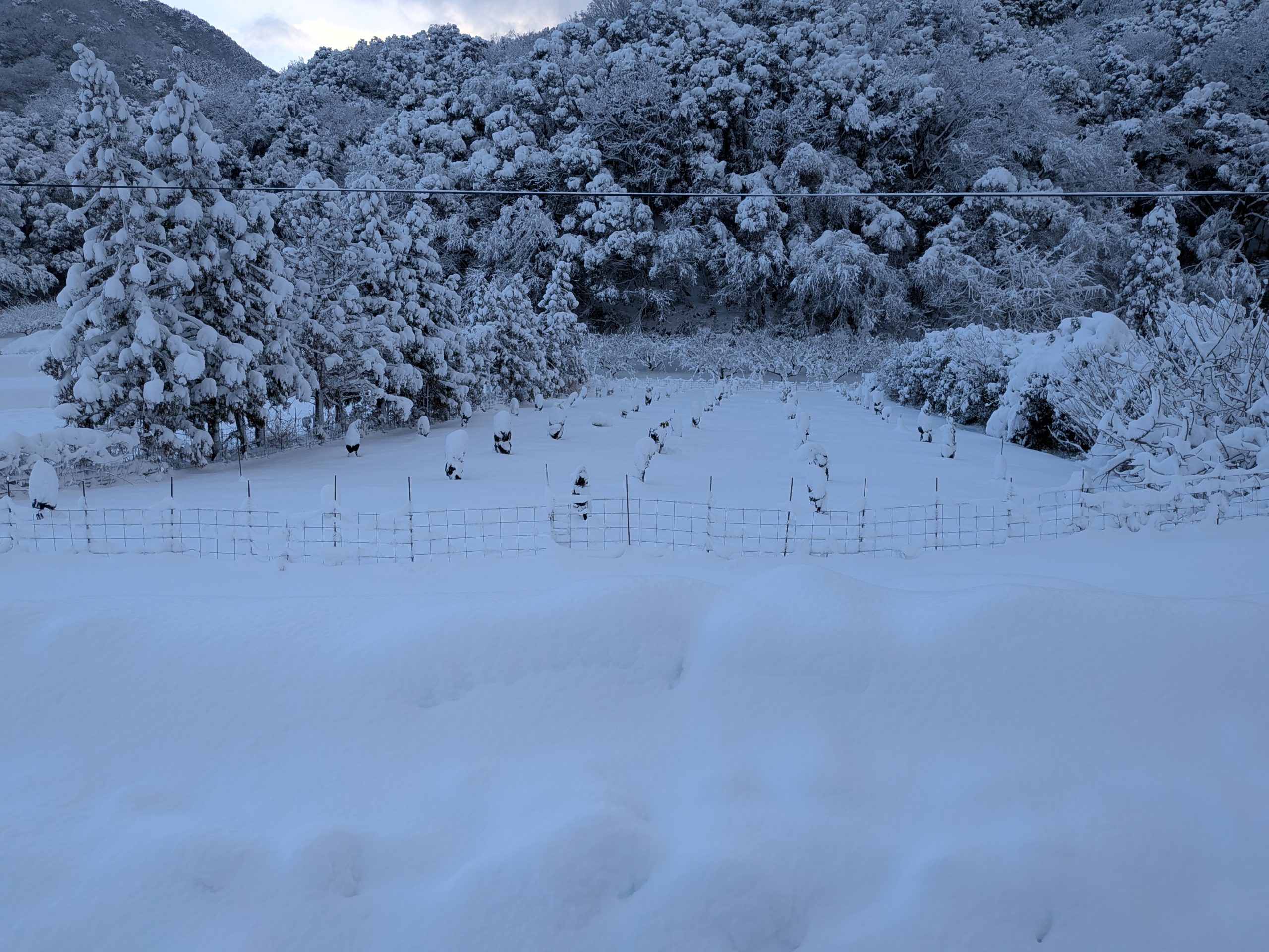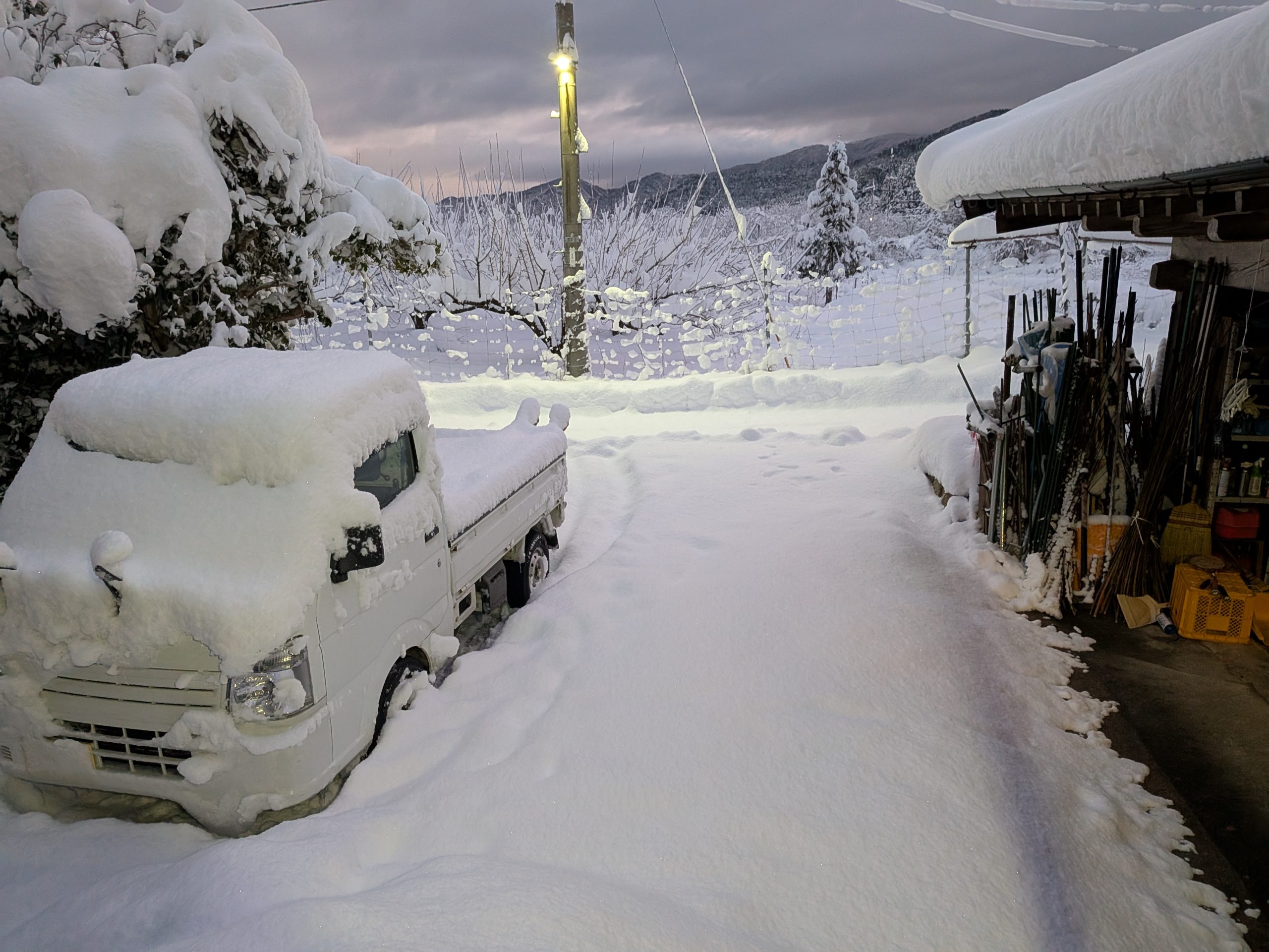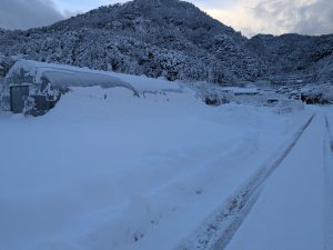 寒波2日目です。夜は、あまり降らなかったのですが、日中でまた30センチほど積もった感じです。今は晴れ間も出てきて、少し安心ですが集落内の道路の除雪が来ていません。大通りは除雪されていましたね。さて、少しハウスと家周りの雪かきをしましょうか。