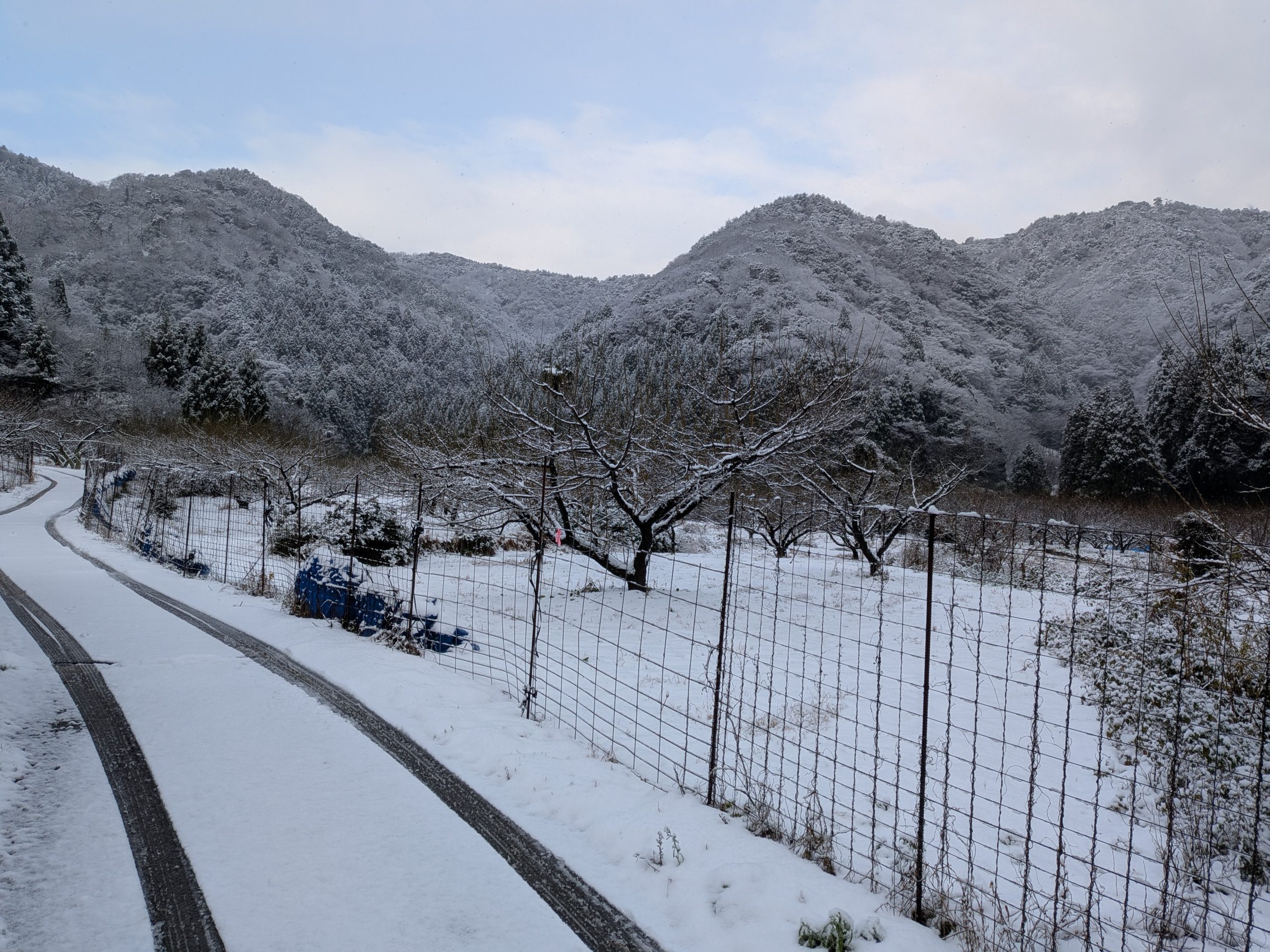 HOME > 日ノ丸福井ウメ > 日ノ丸福井ウメ 梅改植 2025年12月27日 今朝の様子 改植前 伐採 枝処理 今朝は薄っすら雪が積もりました。すぐ溶けてしまうような感じです。寒さ的にもこんなもんで終わるかなという感じです。 梅の園地も改植を進めます。今年は2カ所予定です。1カ所目はにしみ。少し山側にある畑です。この場所は緩い段々畑で機械も入りづらいのと、老木なので、ならして作業しやすいようにしようかなと思います。後は株を抜いて整地です。今年はもう時間が無いので、また来年の天気の良い日にやるとしましょう。 Twitter Share Pocket Hatena Pinterest LINE コメントする コピーする -日ノ丸福井ウメ