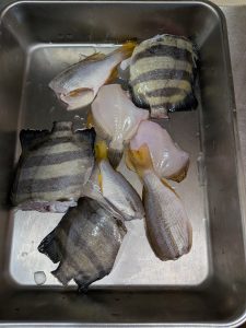 HOME > 日ノ丸福井ウメ > 日ノ丸福井ウメ 魚釣り 2025年10月21日 今日の成果 捌きまして。 オーブン焼き 以前、魚釣りを教えてくれた方が再び来てくれまして、魚釣りに行ってきました。私はちょっといけずでしたが、今回は結構釣れたようです。シマダイ、カワハギ、ともう一つは名前を忘れましたが、大漁です。捌いてオーブン焼きです。ウマい。近くの海で晩ご飯が調達出来るのは有り難いものです。漁業権でも取りましょうか。 Twitter Share Pocket Hatena Pinterest LINE コメントする コピーする -日ノ丸福井ウメ
